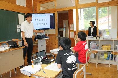 今回は、どの学級も算数の複式指導を行いました。2つの学年が一緒に勉強をするので、先生が直接指導できるのはおよそ半分の時間しかありません。その時間の充実が複式指導の課題の一つです。