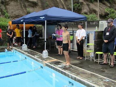 雨の中でしたが、先生方の指導を真剣に聞き、1秒でも速く泳げるように一生懸命に泳いでいました。
