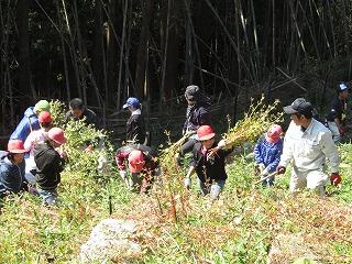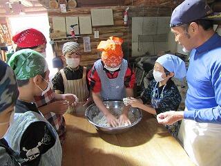 2日目は朝から地域にある施設に出向き、「そば打ち」「こんにゃくづくり」「竹を使っての炊飯」等と全て自分たちの手作りで体験活動を行いました。日頃出来ないことばかりで、とまどいながらも目を輝かせて取り組んでいました。自分たちが苦労して作った料理はさぞや美味しかったことでしょう。