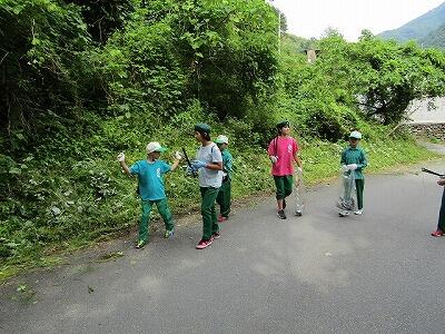 歓迎会の後は、混合のグループでの不土野ウォークラリーが開催され、学校から片道約2キロの道のりをみんなでクイズを解きながら歩きました。昼食やドッジボールも楽しみ、お互いの絆が深まった2校間交流となりました。