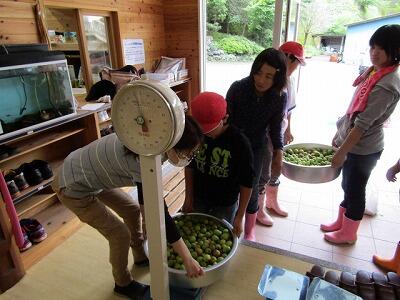 ・ 植える前に記念撮影、うめの花が満開です。今年の夏も大豊作かな?