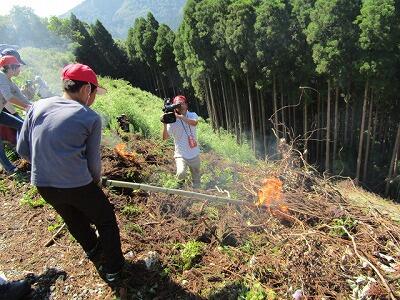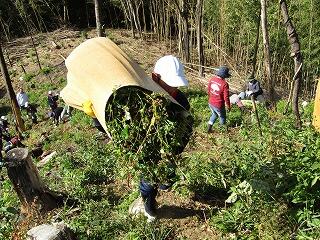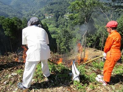 10月26日(月)秋のぬけるような青空の下、子ども焼畑体験学習の「収穫」が行われました。7月31日に火入れ・種まきをした焼畑のそばを、およそ3ヶ月の月日を経て、ようやく収穫しました。