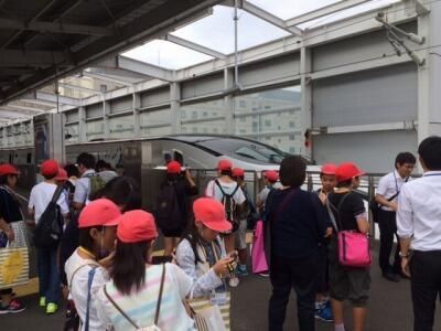 *新幹線が来た!~乗車前に写真撮影で大騒ぎです。