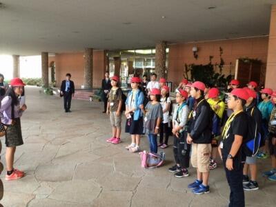 *自主研修の様子~子ども達は鹿児島市内を元気に歩き回っています。鹿児島博物館前です。