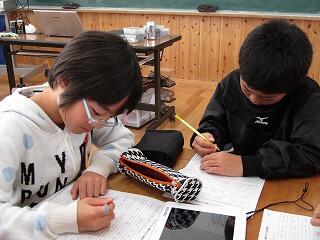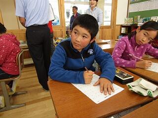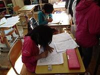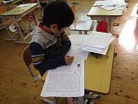 10月28日(水)子ども達の「うーん!」という声が聞こえてきそうな感じですが、3・4年生が作文に取り組んでいました。先生に何度も朱書きをもらいながらも、丁寧な文字で一生懸命に作文を書いていました。