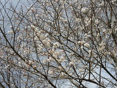 先週末、学校近くの堤防に桜が咲いているのに気付きました。なぜか1本だけきれいに咲いていました(1・2枚目の写真)。葉と花が一緒に出ていないのでソメイヨシノだと思われます。3分くらいは咲いていました。