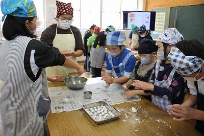 みんなで力を合わせて材料を切ったり白玉をまるめたり盛り付けたりしました。