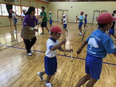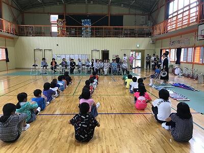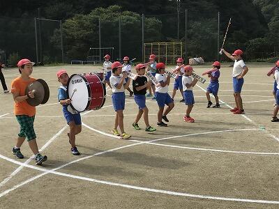 天候が良ければ、水泳発表会を計画していましたが、あいにくの雨で、鼓笛練習の様子を体育館で観ていただきました。
