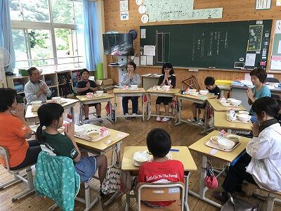また、交流給食も実施し、地域の高齢者の方々や自分のおじいちゃん、おばあちゃんと一緒にお話ししながら、美味しい給食をいただきました。