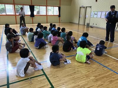 体育館では、黒木所長様より、職員の対応の仕方についてのアドバイスをしていただいたあと、子どもたちには、登下校時の不審者からの声かけについての対処の仕方についても話をしていただきました。黒木所長様から話していただいた、 「いか・の・お・す・し」について再確認することができました。お忙しい中、ありがとうございました。