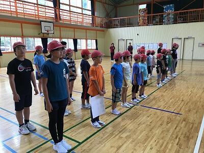 不審者が侵入してきたことを想定して、職員の対応の仕方について訓練を行い、子どもたちを体育館に避難させました。