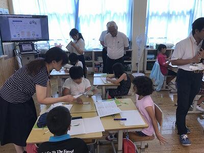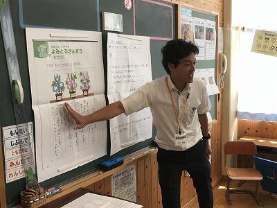 ↓【ローマ字の復習を一緒に取り組む4年生】