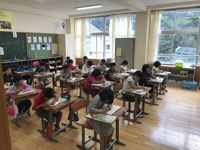 ↓【「ありがとう」の気もちを伝えるために、手紙を書く2年生】