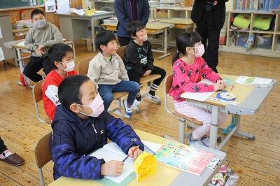 入学予定の3人の子どもたちは、1・2年生の授業を参観したり子どもたちと触れ合ったりする中で、学校への期待が大きくふくらんだようです。新しい仲間が増えるのがとても楽しみです!