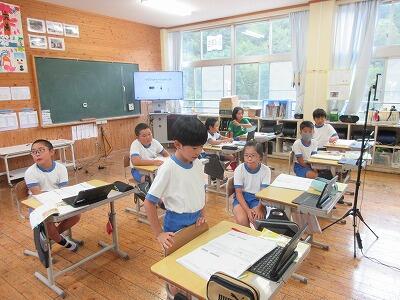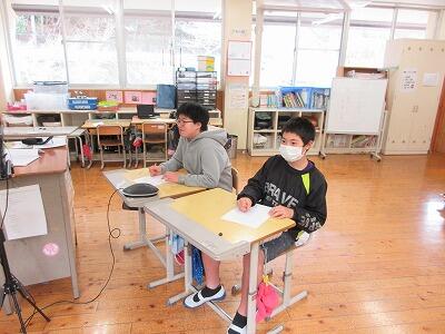 2月28日、椎葉村内5校の6年生と椎葉中学校の1年生がオンラインで交流しました。