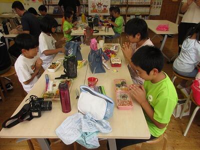 その後、森の遊園地(学校跡地)に向けて出発しました。予定では、森の遊園地で楽しく遊ぶ予定でしたが、昨日の雨で入ることができませんでした。そこで、いつもお世話になっている尾前一日出さんの事務所(森の遊園地のすぐ下)をお借りして昼食と宝探しをしました。友達と楽しくお弁当を食べたり、恒例の宝探しを思い切り楽しむことができました。