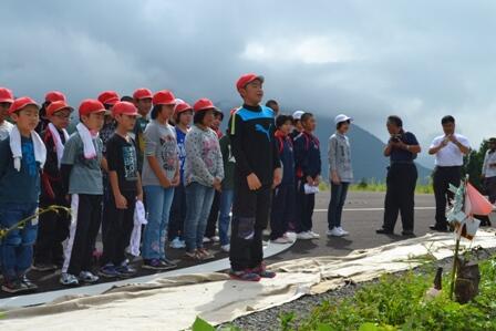 ・ 地区の青年が主となった野球チームが、県大会で優勝して全国大会へ行きます。運動会では、その横断幕を校舎に飾りました。今年は、それ以外にも、緑の少年団が県代表として全国大会へ行き、体力作りバレー大会で尾向ドリームが優勝し、女性スポーツ祭ミニバレー50歳以上の部で向山地区が優勝するなど、いろんな面で優秀な成績をおさめています。