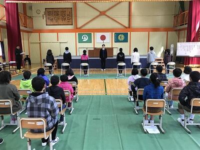 1年生~5年生それぞれの代表児童に修了証を手渡しました。昨日、素晴らしい卒業式で、6年生を送り出し、いつも6年生がいた場所に誰もいないのは寂しいですが、これからは自分たちがこの尾向小学校を支えていくのだと決意をした瞬間でもあります。代表の1年生の作文発表も大変立派でした。この1年間の成長を感じました。