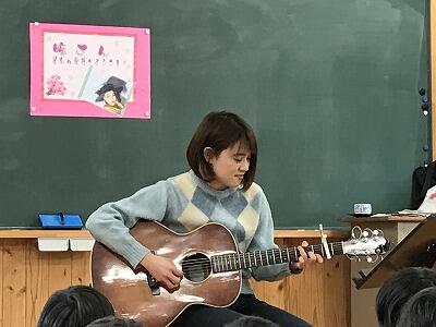 瞳さんが尾向小学校に来るのは、今年度で3回目で、毎学期来ては子どもたちに歌のプレゼントをしてくださいました。
