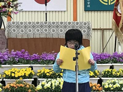 式では、小学校で頑張りたいことや将来の夢の発表、お父さん、お母さんへの感謝のお手紙を大きな声で読みあげていました。