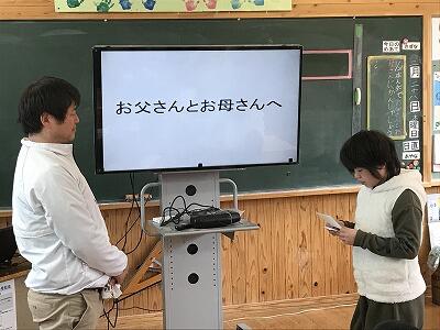【4年生は1/2成人式を行い、お父さん、お母さんへ感謝の手紙を披露しました】↓