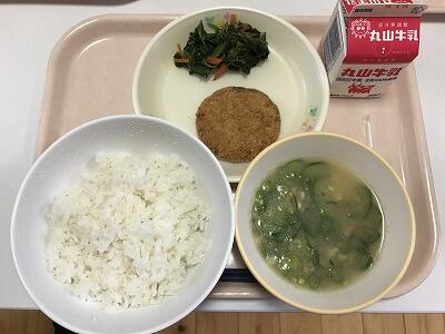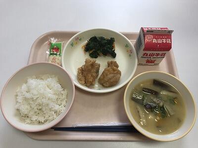 今日の給食は、麦ご飯、チキン南蛮、タルタルソース、添えほうれん草、夏野菜のみそ汁、牛乳でした。