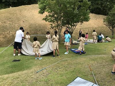 テント設営、夕食の準備等子どもたちと、保護者の協力も得ながら、無事終えることができました。ご参加いただきました、保護者の皆様、先生方ありがとうございました。