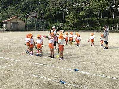 また、週1回は、「高鬼」という追いかけっこ?みたいな遊びで、1年生から6年生までの全校児童で元気いっぱい、笑顔いっぱい、6年生がリーダーシップを発揮して仲良く遊んでいます。