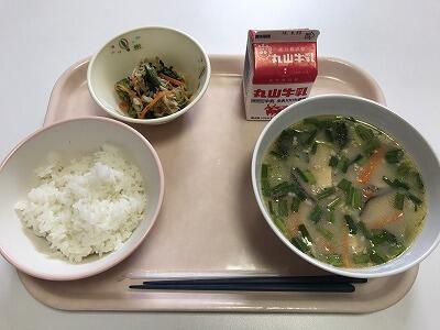 今日の給食は、麦ご飯、チンジャオロース、小松菜のごま和え、牛乳でした。