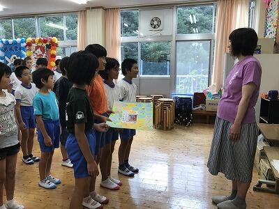 来週から産休に入られる、調理員の翠先生のお別れ集会を行いました。翠先生は、6年生が1年生の時から、成長する姿を見てきてくださいました。そして、安心安全な、毎日の美味しい給食を作ってくださっていました。ありがとうございました。