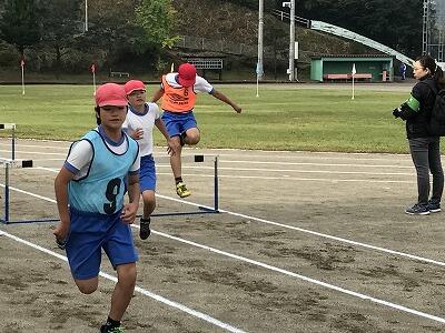 ※子どもたちは、50mハードル競走、100m競走、走幅跳、ソフトボール投げ、男子1000m競走、女子800m競走、学校対抗400mリレーに出場しました。
