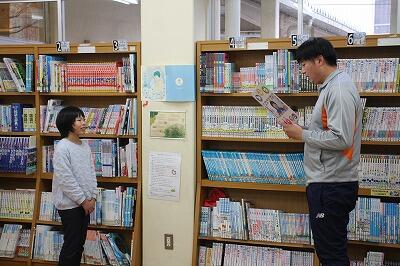 児童どうしや職員との交流を深めることを一番の目的としています。また、児童数が減ったことで生じた給食当番の負担を軽減するねらいもあります。会場はマルチパーパス(図書室)です。