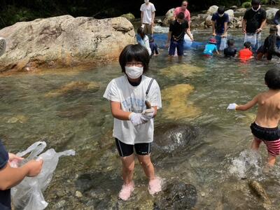 魚のつかみ取りには多くの子どもたちが参加しました。尾向小の子どもたちも多数参加し、大はしゃぎで魚を追いかけていました。いつも目にしている川ですが、水と触れ合うことはなかなかないので、とてもよい体験になったようです。