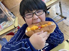 私が子どもの頃の給食と今の給食は大違いで、今は栄養教諭が時期的なものや地産地消など、様々な観点から献立を立てています。今週は子どもたちも職員も楽しみにしていた献立がありました。3月8日(火)はフルーツサンドでした。口を大きく開けて食べる子どもたちは笑顔いっぱいでした。3月11日(金)は宮崎牛のステーキ丼でした。柔らかく、噛めば噛むほどに味が染み出ました。どちらも完食で残滓なしです。給食に関わってくださっている様々な方々に感謝です。ありがとうございます。※ステーキ丼の画像はありません。すみません。