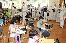 29日に椎葉村議会議員10名、議会事務局2名、教育委員会2名が来校され、本年度整備していただいたタブレットを子どもたちがどのように活用しているかをご覧になりました。教師の授業での活用状況や子どもたちの学習の様子を見て大変感心されていました。今後も引き続きタブレットの積極的な活用に取り組んでいきます。