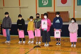 3月5日(金)にお別れ集会とお別れ集会を実施しました。当日朝までの雨の影響で目的地はぬかるんでいて、校内遠足になりました。お別れ集会では1・2年生は「パプリカ」のダンスとメダルのプレゼント、3・4年生は3人の卒業生の名前を使った「あいうえお作文」の発表と色紙のプレゼント、5年生は「炎」の卒業生バージョンの替え歌の発表と卒業生のイメージ漢字のプレゼントでした。下級生の中には涙を流す子どもたちもいて、感動の中に会が進みました。その後、全校レクレーションや宝探し、お弁当やお菓子タイム、映画鑑賞など、校内遠足でも充実した時間が過ごせました。