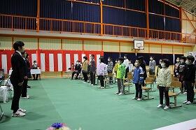 本日、令和3年度がスタートしました。新任式では新しく尾向小学校に赴任した3名の職員の紹介がありました。教頭の黒木義昭先生、管理用務員の大倉亜也加先生、給食調理員の椎葉キク子先生です。自己紹介の後、6年生の代表児童から3人それぞれに尾向小ならではのクイズがあり見事全員正解しました。