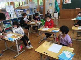 先月3年生が尾前地区を探検したことを写真や自分の感想を交えて地図にまとめました。今日はその発表会で、子どもたち1人1人が自分の担当施設を説明しました。保育所の年齢別の子どもの数の報告やお店でのレジ打ち体験など、見たこと、聞いたこと、体験したことを詳しく説明できました。自分たちの住んでいる尾向地区の再発見ができたようです。