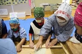 そば打ち体験では、講師や保護者の方々に手順を教えていただきながら活動をし、そばを打った後、全員で試食を行いました。自分たちで栽培したそばの味は格別のようでした。子どもたちは、これまでの活動を思い出しながら、おいしくそばをいただいていました。