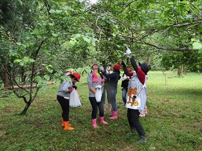 1年生は初めての、6年生は最後の梅ちぎりでしたが、子ども達は丸々と実った梅の実をうれしそうにちぎっていました。収穫後、学校に帰って5・6年生が重さを量ってくれました。今年は全部で34.4kgの収穫がありました。