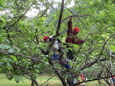 6月23日(火)雨天のため1週間延びていた恒例の「梅ちぎり」が行われました。場所は今から約60年前の昭和31年に尾向小が今の場所に移転するまで学校だった所です。今でも当時の校門が残っています。この校舎跡地に、今から24年前の平成3年に当時のPTAの方々の手で、柿16本、栗15本、梅5本が植えられたということです。