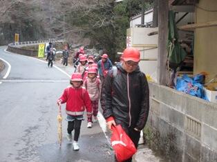 ・ 今朝は風もあり気温も低かったです。向山地区から下りてくる車には雪が積もっているものもありました。今週は、割と朝の気温も高め~と言っても3度とか~だったのですが、今日は学校付近で1度でした。上の地区は雪も降り、もっと低かったんだろうなと思ったところでした。写真は、たくましく登校する向山特の児童達です。