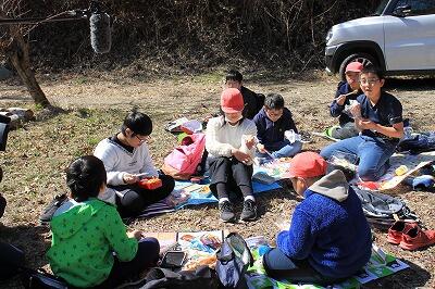 昼食を食べた後は、宝探しをしました。お別れ遠足の宝探しはかなり昔からの伝統のようです。子どもたちは必死になって隠された色画用紙を探していました。何とか全員が宝を見付けることができました。