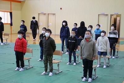 今日はお別れ集会の様子を紹介します。体育館で実施する予定でしたが、あまりの寒さ(氷点下)のためマルチパーパスに変更しました。