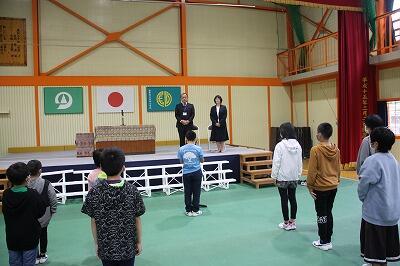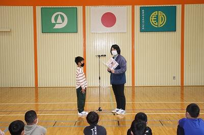全校集会では、人権作品や動物作品コンクール、村陸上大会の表彰も行いました。