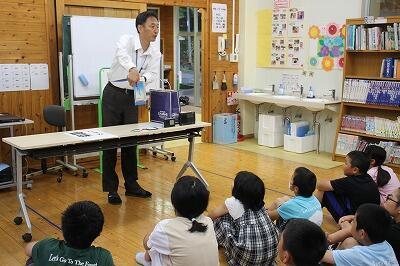 7月4日、地元にある「尾前とうふ店」の尾前チエカさんをお迎えして給食感謝集会を行いました。
