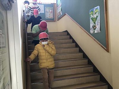 今回は、給食室から火災発生という想定で、火災警報機が鳴り、火元を確認し初期消火のために先生方が駆けつけ、消火器で消せないと校長が判断し、緊急放放送の後、素早く整然と避難することができました。