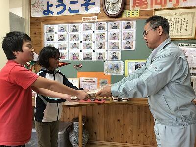 昨日、全校児童で「お帰りなさい集会!」を行いました。尾向小の美味しい給食をよろしくお願いします。