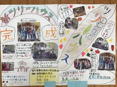 また、今回は先日、旧尾向小学校跡地に子どもたちの手造りで完成した、森の遊園地(ツリーハウス)の宣伝も一緒に行います。