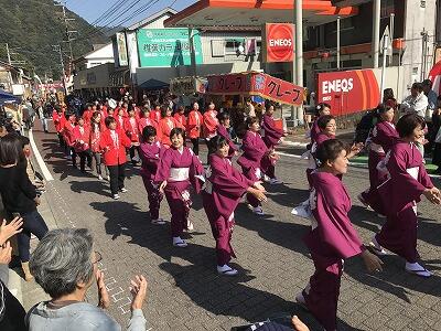 午前中のステージで行われた「やまびこ発表会」では、本校は尾前地区の児童による、尾前子ども神楽を披露しました。午後からの武者行列には、本校の児童2人が「こども大八郎」と「子ども鶴富姫」に、また本校卒業児童(椎葉中生)や教頭先生、保護者も行列に参加し盛り上げていました。
